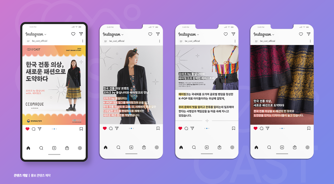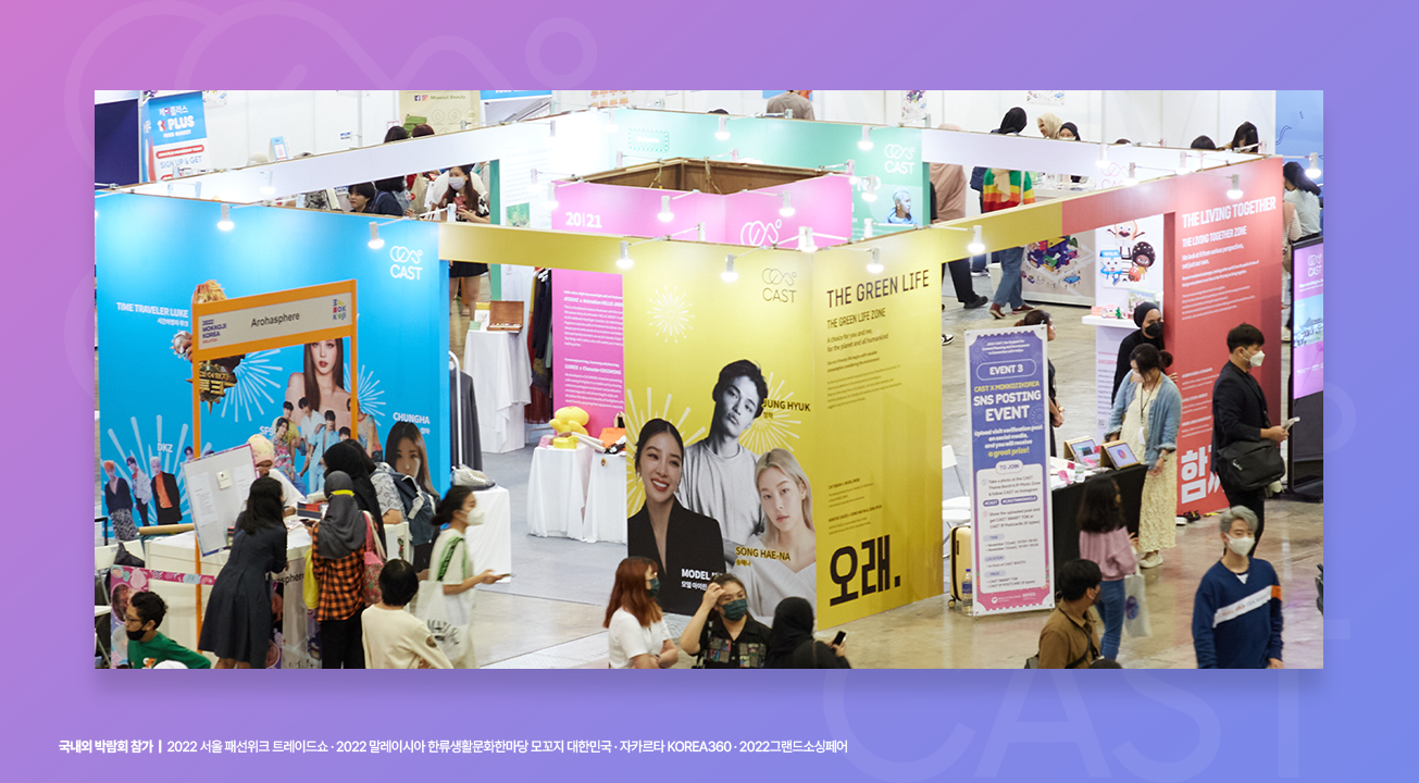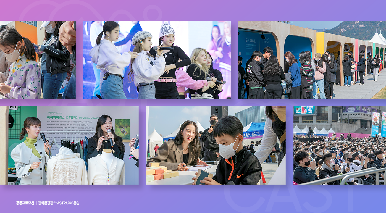 「한류연계 협업콘텐츠 기획개발 지원 (CAST)」 사업은 잠재력과 기술력을 갖춘 한국 중소기업과 한류 콘텐츠가 만나 기획·개발, 홍보, 유통 전 과정을 체계적으로 지원하는 사업입니다. 한류IP를 중심으로 브랜드 스토리를 개발하기 위한 상시 컨설팅 운영, B2C/B2B 프로그램 운영을 통하여 실효성 있는 마케팅을 지원하였습니다. 서울 광화문광장 일대에서 사업을 총망라하는 대규모 공동프로모션 개최를 통하여 효과적인 확산 및 한류와 기업의 동반성장을 도모하였습니다.