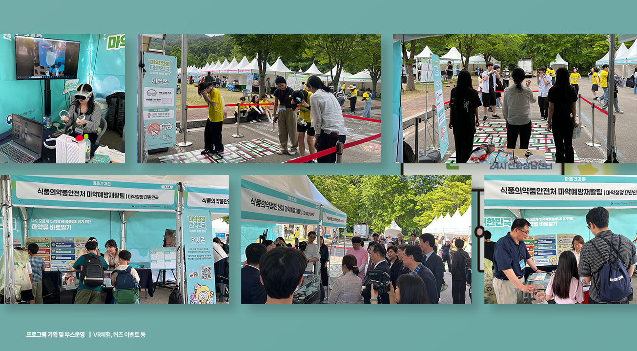 「2024 제 20회 대한민국 청소년박람회 행사 운영」 사업은 온/오프라인 으로 진행되는 “2024 제 20회 대한민국 청소년 박람회” 연계 청소년 및 학부모 대상 식품의약품안전처 마약예방재활팀의 마약류 오남용 예방 부스를 운영하였습니다. 마약퇴치운동본부의 교구 활용 체험 프로그램과 모형 전시, VR 게임 체험 프로그램 등을 운영하여 청소년의 마약 오남용 예방에 기여하였습니다.