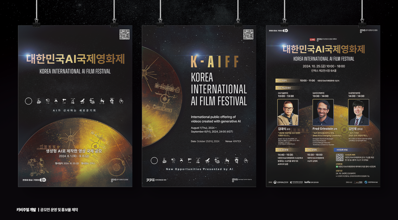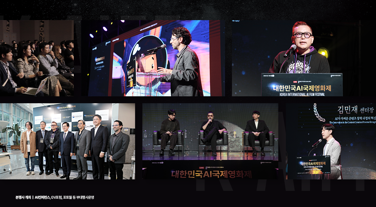 「대한민국AI국제영화제(K-AIFF)」는 국내 최초의 생성형AI를 활용한 영화제로 콘텐츠산업 창작활동의 다각화를 모색하는 사업입니다. 지난 10월 세계적인 주목을 받으며 일산 KINTEX에서 성황리에 개최하였으며 'Curious Refuge', 'NC Soft AI Center', '딥브레인AI' 등 글로벌 AI 기업과의 협업체계를 구축하는 등 AI콘텐츠 산업을 확장하는데 기여하였습니다.